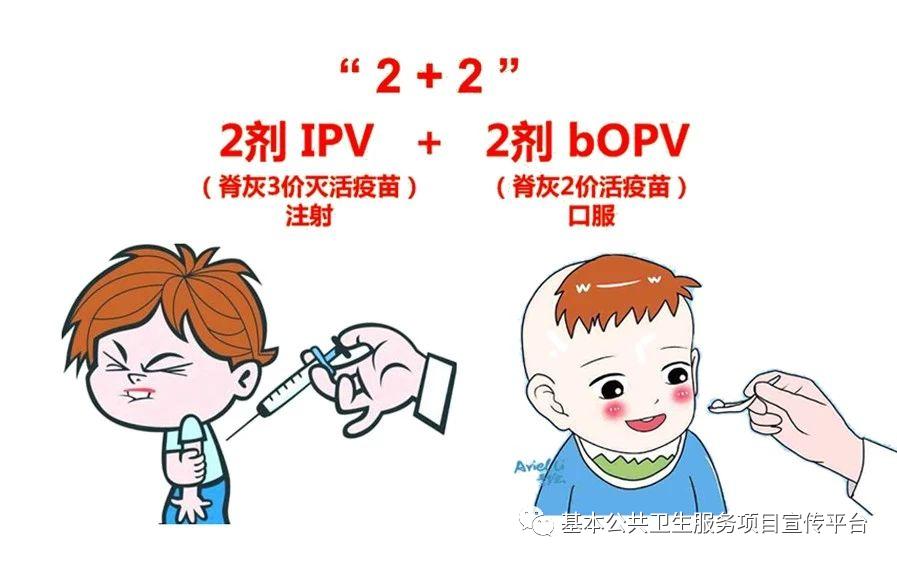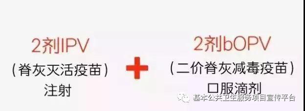 共接种4剂次,2月龄、3月龄分别接种1剂次三价脊灰灭活疫苗(IPV),4月龄和4周岁时分别接种1剂次二价脊灰减毒活疫苗(bOPV)