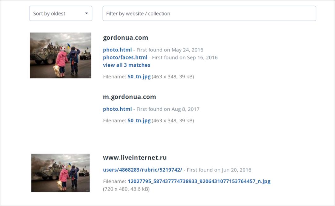 在图片反搜工具TinEye反搜图片,可以发现这张图最早在2016年就已出现,与本次俄罗斯对乌克兰发动的战争无关。