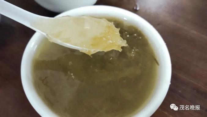 据介绍,海菜是绿色的,像头发一样细长,每年1至3月份最多,渔民从漂浮的海面上捡回来的,要经多次清洗才能食用。其富含蛋白质、多种维生素和微量元素,具有调节血脂、利尿消肿、调节血糖的功效。至于海菜的具体学名,当地人表示不清楚。海菜糖水是当地特有的糖水,是许多当地人的童年记忆。电城人张先生说,在他小时候,其父亲曾在家中做过海菜糖水。工作后,在其他地方都没见过海菜糖水。
