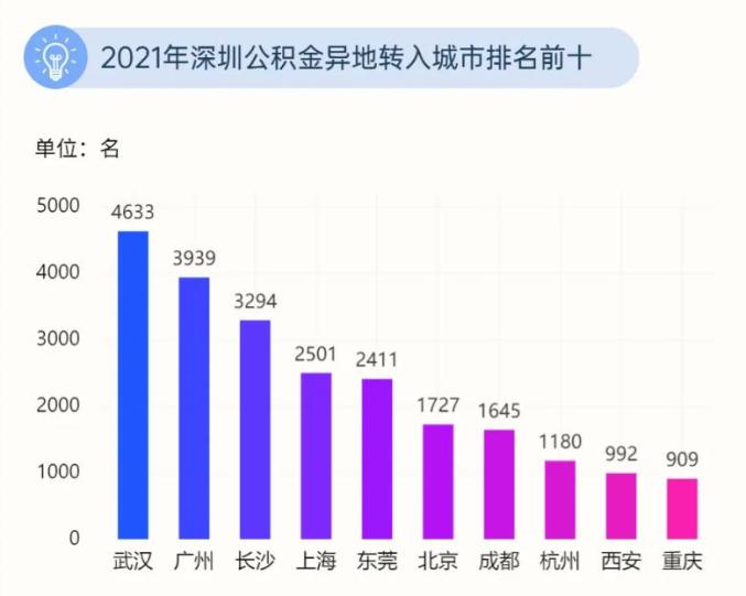 除了这个数据,还有一个数据也很有意思。深圳市住房公积金管理中心近日发布了2021年度账单,从中可以窥探到:哪些城市的人,正在迁移至深圳