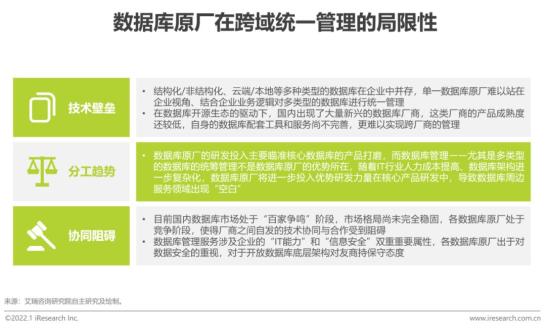 数据库原厂无法提供跨数据库统一管理和服务数据库原厂将主要力量投入到自身数据库产品的研发中,但受到技术壁垒、行业分工以及其他市场因素的限制,数据库原厂无法提供自身产品以外的跨数据库统一管理和配套服务,留出的市场需求空白必然要由第三方数据库生态厂商进行补充。