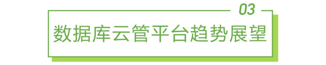 随着云服务的普及,以云形态提供的数据库服务有望占据更加主流的位置。云服务存在多种形态,私有云、公有云、行业云、混合云,不同的云有不同的云供应商和技术架构,数据库云服务也存在不同的类别,关系型数据库服务、键值数据库服务、时序数据库服务等。多云和多类型数据库服务的环境下,数据库服务统一管理仍然对企业用户有巨大的价值。对数据库云管平台本身来讲,也可以演进成云的形态,将云上运维转变为管理云,以管理即服务的形态为企业用户提供更为弹性、便捷的服务。