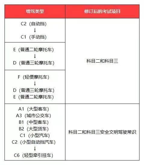另外,记者了解到,C2考试项目减少,由原来的五项变为四项。据了解,C1(手动挡)和C2(自动挡)的考试项目有了明显的区分。C2取消了“坡道定点停车和起步”的项目,相对来说减少了一些难度,对于想报考C2的朋友们来说,无疑是个好消息。同时,在驾驶证增驾考试上,科目也相应减少,C2增驾C1,不再考科一、科四的理论知识,只需考科目二、科目三即可。此外,在其他驾照增驾上,也做了调整和优化,特别要注意的是,C6驾照只能通过“增驾”考取。此车型的增加,意味着允许驾驶小型汽车列车,满足大家对于驾驶房车出游的需求。要点二: