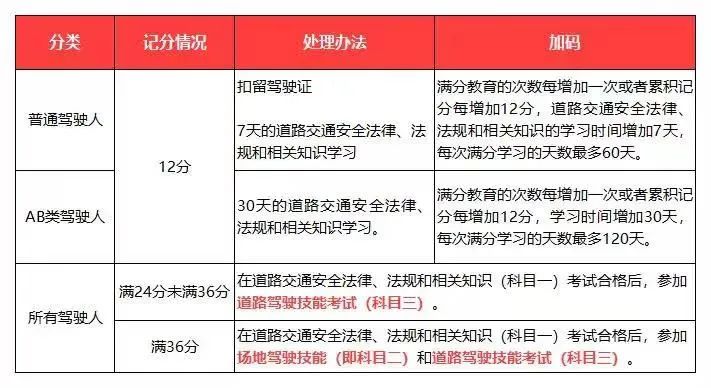 也就是说,以后记分达到36分及以上的,不仅要参加满分教育学习,还要重新参加科目一、科目二和科目三的考试。开车风格较为“粗放”,经常因交通违法被记分的人要注意了。要点四: