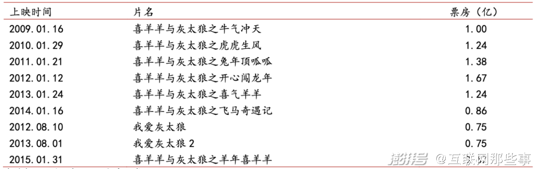 《喜羊羊与灰太狼》系列电影,数据来源:猫眼