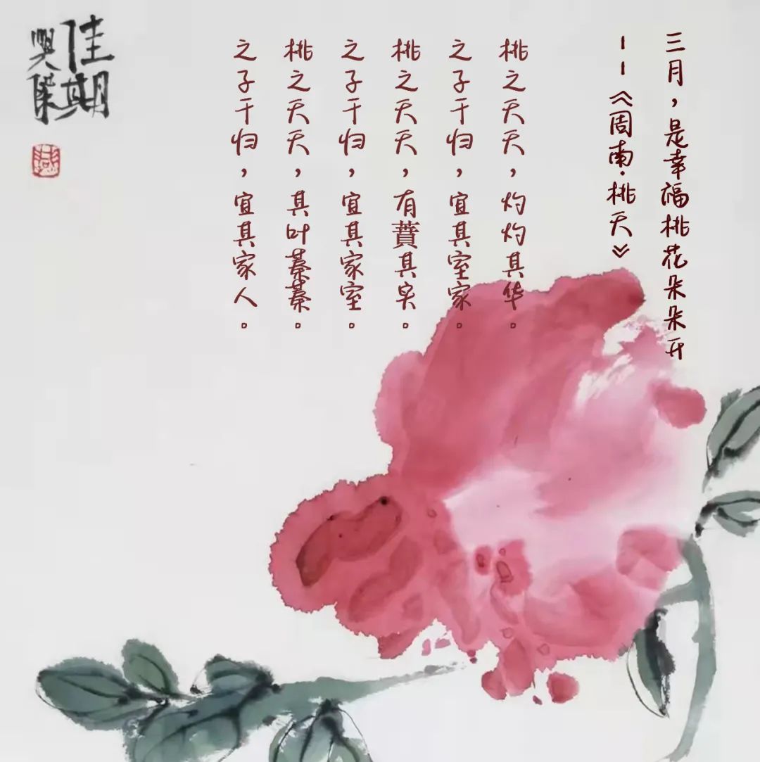 背景图:李兴杰《佳期》除了青年男女相邀游赏,三月还是成亲的美好季节。《桃夭》叙写的就是女子出嫁的情景和作者的美好祝愿。“莫道蜂蝶往来忙,果然娇艳世无双。暖雨香风频相顾,花开正是好春光。”桃花美,桃花艳,桃花开在三月间。春水漾漾,春山苍苍,草长莺飞时节,邂逅这十里红妆,置身于温暖花香,怎不让人沉溺和欢喜?