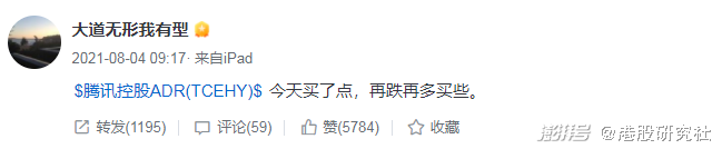 8月4日,段永平在个人的账号上宣布自己已经少量买入腾讯,并表示:如果再跌的话,会买入更多。