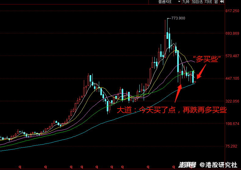目前,在港股研究社看来,技术面看,腾讯已经跌破472港元的支撑位,接近MA60线,能否在60日线止跌还不好说。如果继续向下,那可能要去400港元附近看一看机会了。现在买腾讯,段永平不一定是在“抄底”,他的买入逻辑应该是基于一个比较长的周期下的。