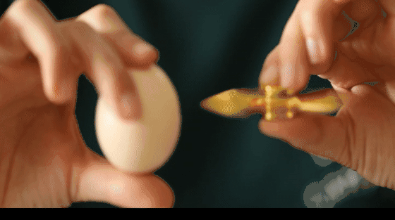 通过实验可以看出,高速旋转中的指尖陀螺可以轻易将蛋壳打碎。
