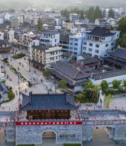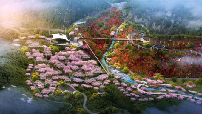一溪两岸项目依托芹溪村优势资源环境及人文历史,将天门瀑布、江南红旗渠、中共临三县委旧址纪念馆串连成线,以“乡村慢生活”和“山地户外”为主题,形成核心吸引与特色餐饮民宿和山地主题游乐,构建集山水观光、乡创空间、民宿体验、红色研学、山地探险于一体的乡趣盎然的古村。
