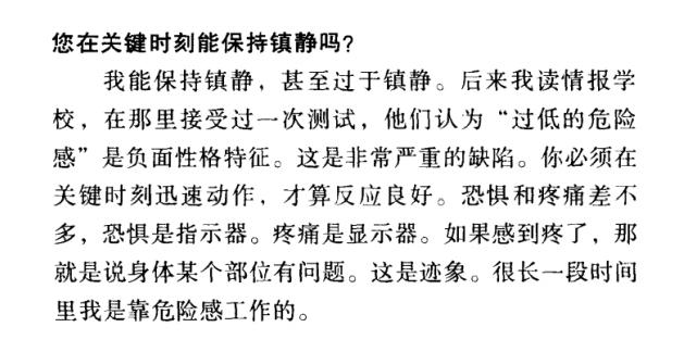 特工的一个基本素质是在危急中保持冷静。《自述》中,采访者曾问过普京,你在关键时刻能保持镇静吗?
