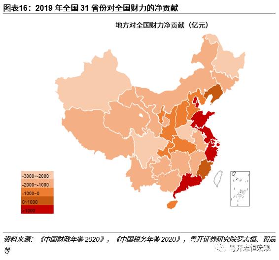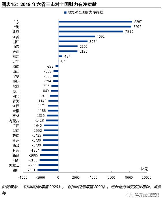 (二)分区域来看,“六省三市”对全国财力有净贡献