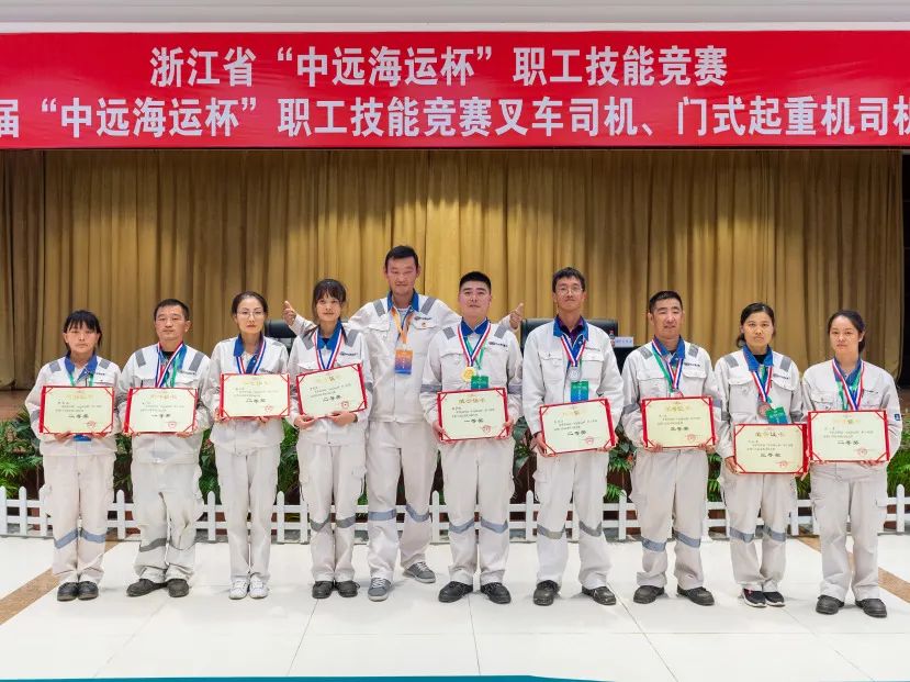▲ 陈小芳获“中远海运杯”门式起重机司机大赛二等奖(右一)船舶制造的高要求也在不断磨炼、塑造着工人们精益求精的工匠精神,也正是因为有众多像陈小芳这样兢兢业业的技术人才坚守奋斗,舟山的工业发展才能走上“快车道”。
