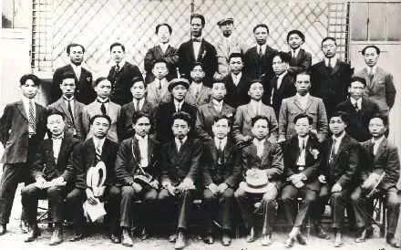 青年团第一届中央执行委员会委员。上左为施存统(书记),右为张太雷,