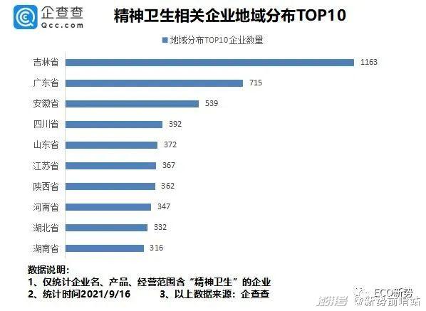 根据统计,我国抑郁症患病率为2.1%,焦虑障碍患病率已达到4.98%,有16%-17%的人深受各种各样精神心理问题的困扰。根据企查查数据显示,目前我国现存“精神卫生”相关企业总共只有七八千家,在地域上现存精神卫生相关企业主要分布在吉林、广东、安徽等省份,其他省份加起来只有百十家左右,而注册资本在100万元以下的中小企业占了60%。