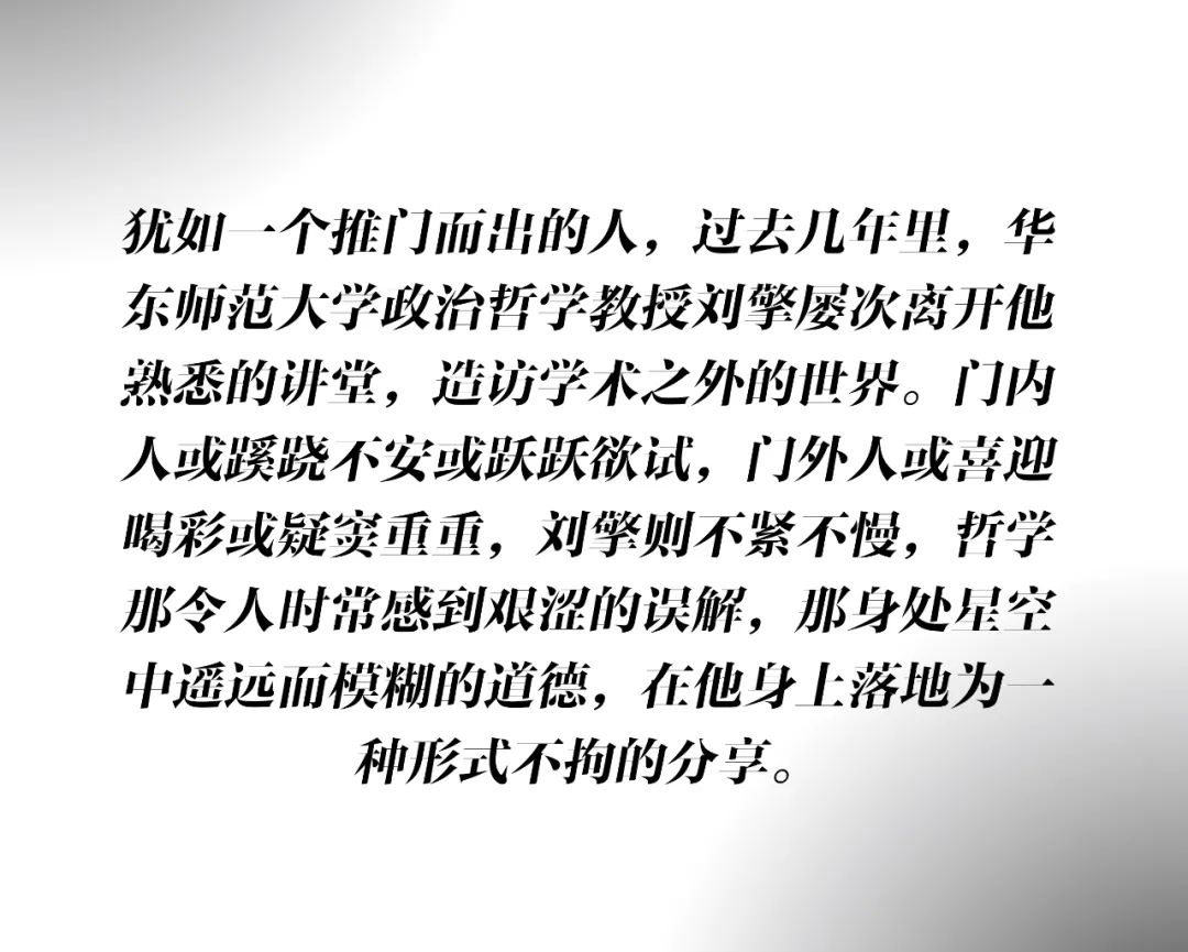 对于因自己引发的哲学热潮,刘擎并不意外,他经历过那种时刻,思维和感官被打开,你会发现你想要理解的事情太多,与此同时又不感到焦虑,这是一种非常纯粹的快乐。