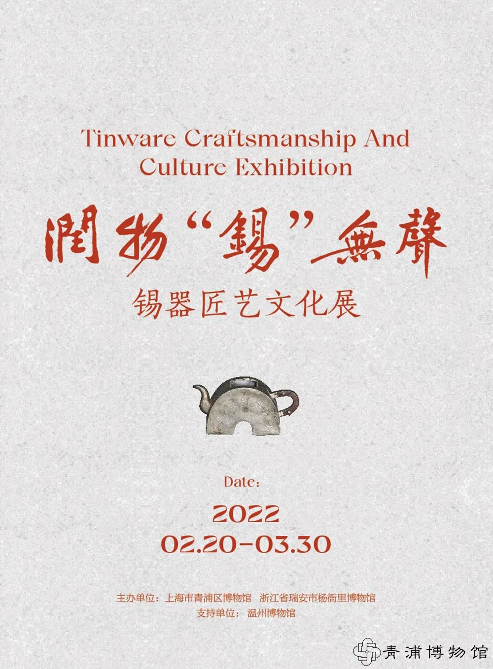 本次展览共有160余件锡器,均为浙江省瑞安市杨衙里博物馆的馆藏。展品时代跨越千年,造型精美,用途各异,贯穿了民间生活的各个层面,每一件精美的老锡器,都承载着不同的历史文化故事。展览时间:2022年2月20日—2022年3月30日