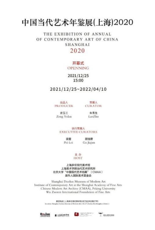 本次展览以北京大学「中国现代艺术档案」为基础,对一年间中国当代艺术界发生的所有信息和数据进行收集、调查和研究,最终整理为《年鉴》。《年鉴》旨在记录中国当代艺术的发展历程,反映当下的社会思潮、文化现象等。2020年《年鉴》共计收录中国当代艺术展览及活动1819条、文献3168篇,涉及6000多位艺术家的活动信息,最终编辑部选择近100位艺术家编入《年鉴》。展览时间:2021年12月25日—2022年4月10日
