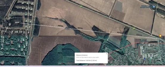视频摄制的地点与“第222号中央炮兵武器库”十分接近,用比例尺测算,二者的直线距离约有3.63公里。