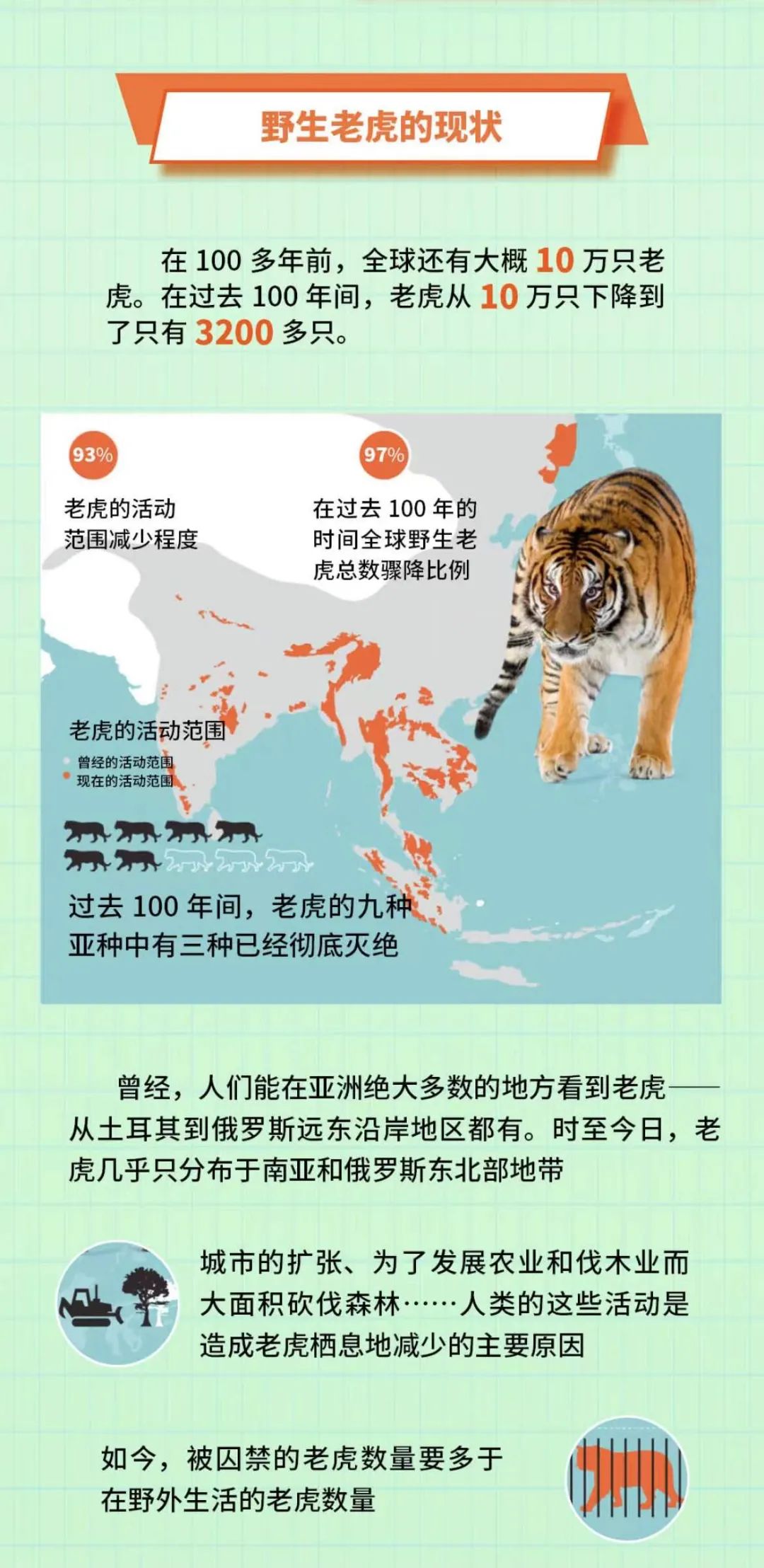 3月3日是世界野生动植物日。2022年世界野生动植物日的全球宣传主题是“恢复关键物种,恢复生态系统”。旨在吸引人们关注一些最严重濒危的野生动植物物种的保护状况。华南虎是我国特有的虎亚种,又被称为“中国虎”,也是最濒危的虎亚种。联合国1996年发布的《濒危野生动植物国际公约》,将华南虎列为世界十大濒危动物之首。让我们关注一下“百兽之王”的生存现状。