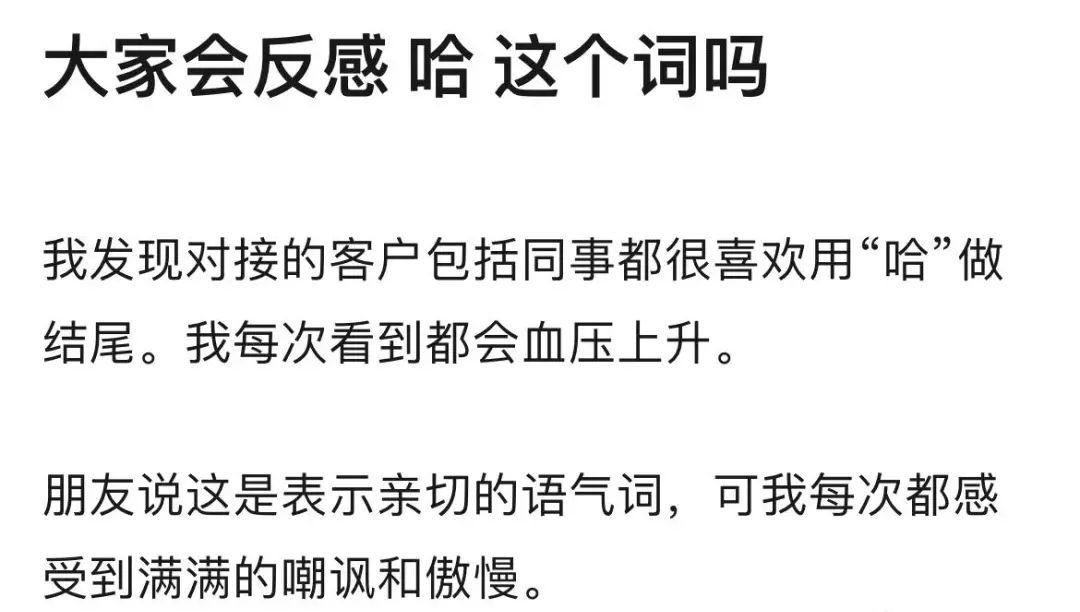 职场人士认为在句子结尾说上一个“哈”,就掌握了与甲方沟通的心灵代码。