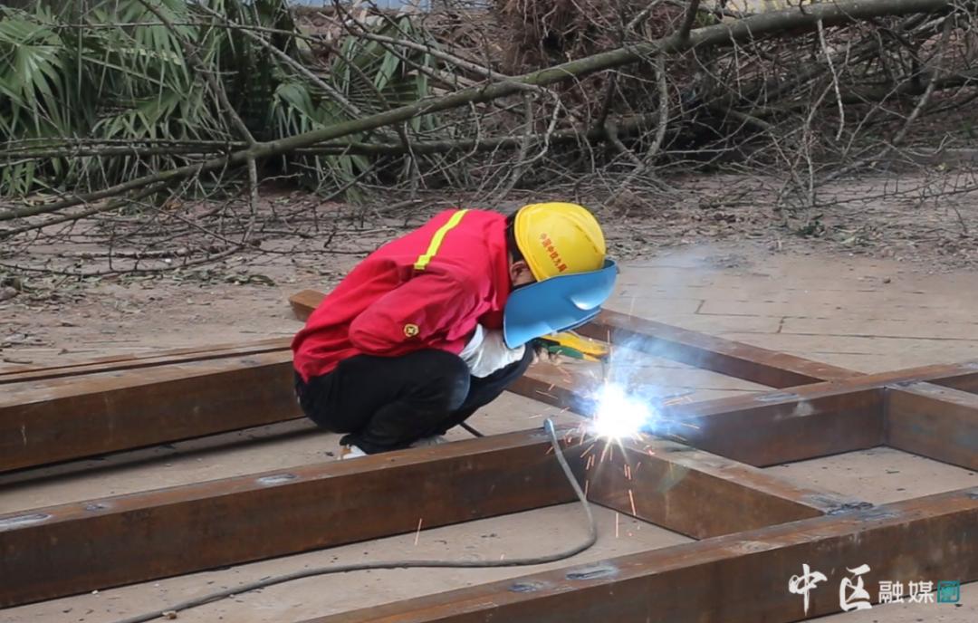 3月1日上午,小编来到了内江麻柳坝大桥及连线工程项目市中区段的建设现场,在世纪滨江小区小广场和原九小的位置,已经圈地打围,现场一派热火朝天的景象,机器轰鸣、焊光闪烁,随处可见施工人员忙碌的身影。