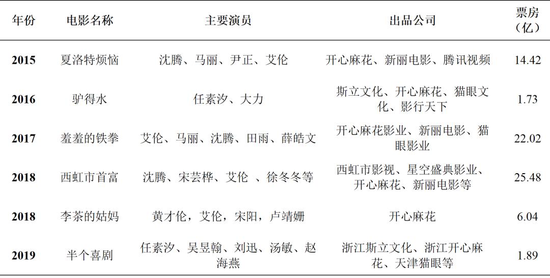 表1 开心麻花出品电影一览表