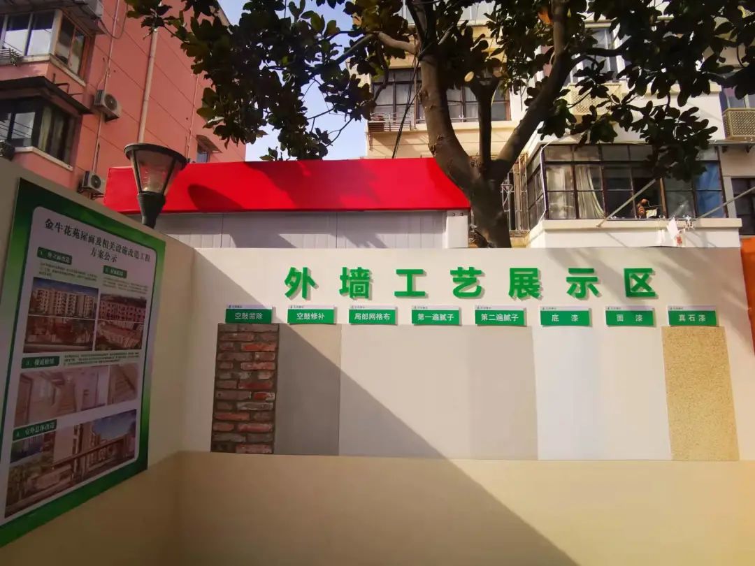 一方面做好沟通和解释工作,施工队安排双倍人手,严格控制工期,减少对居民的影响,确保春节前安全交付;另一方面,改造的工艺怎样、用啥材料,汇成在楼栋背面开辟出一个工艺展示区,不加锁的开放空间邀请小区居民实地了解体验。