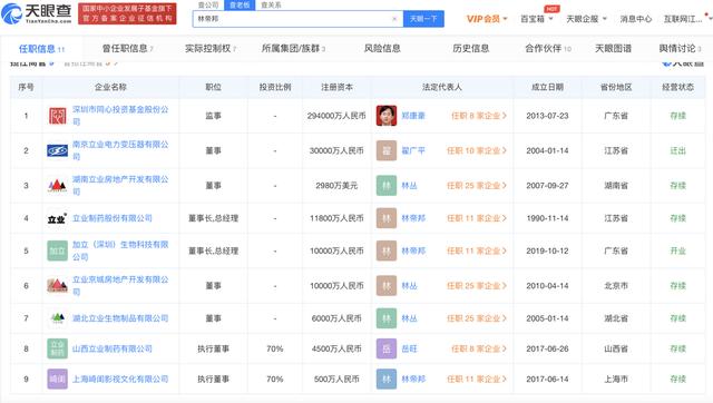 据天眼查APP可公开查阅的信息显示,目前,林帝邦担任4家公司股东,9家公司担任高管。其中不乏林立为实控人的企业,包括立业地产、立业制药等企业。另有公开资料显示,从2013年,林帝邦就在其父名下的华林证券担任财务部经理。