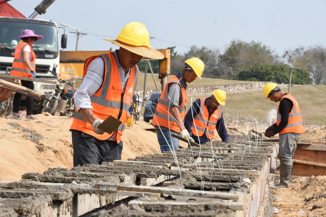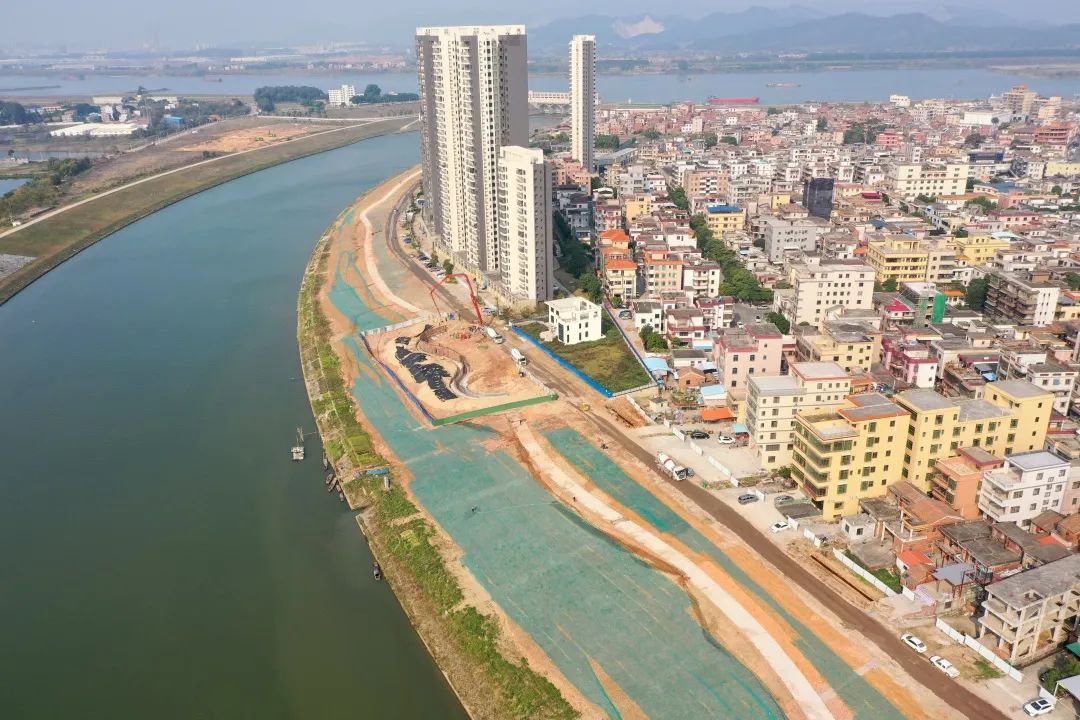 ▲芦苞涌左岸(芦苞水闸——彩虹桥)堤路结合工程施工中。