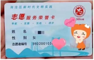 海沧区对注册地在海沧、且在“中国志愿服务网”登记服务时长超过300小时的志愿者发放志愿服务荣誉卡。拥有了这张海沧志愿服务界的“黑金卡”,志愿者可在海沧享受爱心单位(商家)提供的礼遇项目。