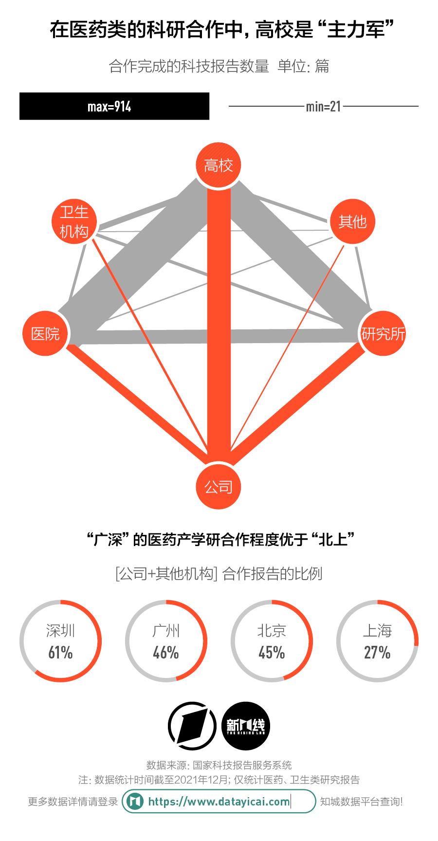 如果将公司与其他单位合作完成的报告数量,视为衡量城市“产学研”一体化的指标之一,可以发现深圳的公司参与了61.17%的合作产出。也可以理解为,创新链与产业链的打通,是深圳在产业发展上能够持续突破的关键要素。