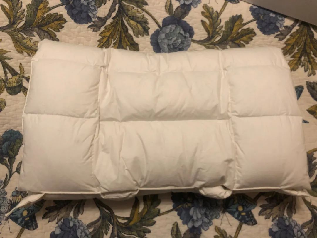 ▲今年1月份,同事大潘探访枕头工厂时,就自购了这款舒颈鹅绒枕好的枕头,是要试出来的