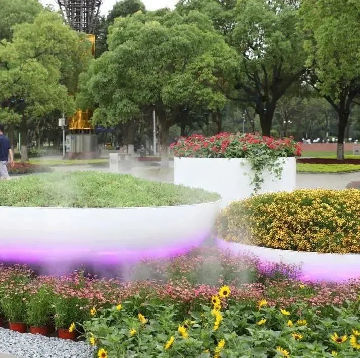 设计微地形草坡、互动感应跳泉