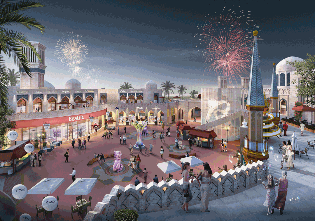 北大门内侧亚欧纽带建筑项目建造中国神奇中华街区、印度恒河象谷街区、中亚沙海秘境街区、中东瑰丽波斯街区、俄罗斯极光雪国街区、希腊众神之战街区、意大利荣耀罗马街区七个主题文化街区,将世界文化汇聚一城。