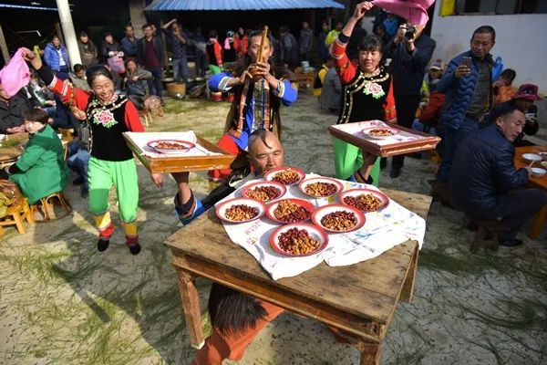 在当地村寨,举行喜庆、婚礼、丧事等活动的时候,跳菜必不可少。遇到喜事,用跳菜助兴,而遇到丧事,可以用跳菜化悲。和唢呐这种乐器一样,跳菜也可以从一个人的出生跳到他的头七。如果你问跳菜有什么意义,当地人会告诉你只要他跳得足够稳、足够快,菜就不会倒、不会凉,生活也是。