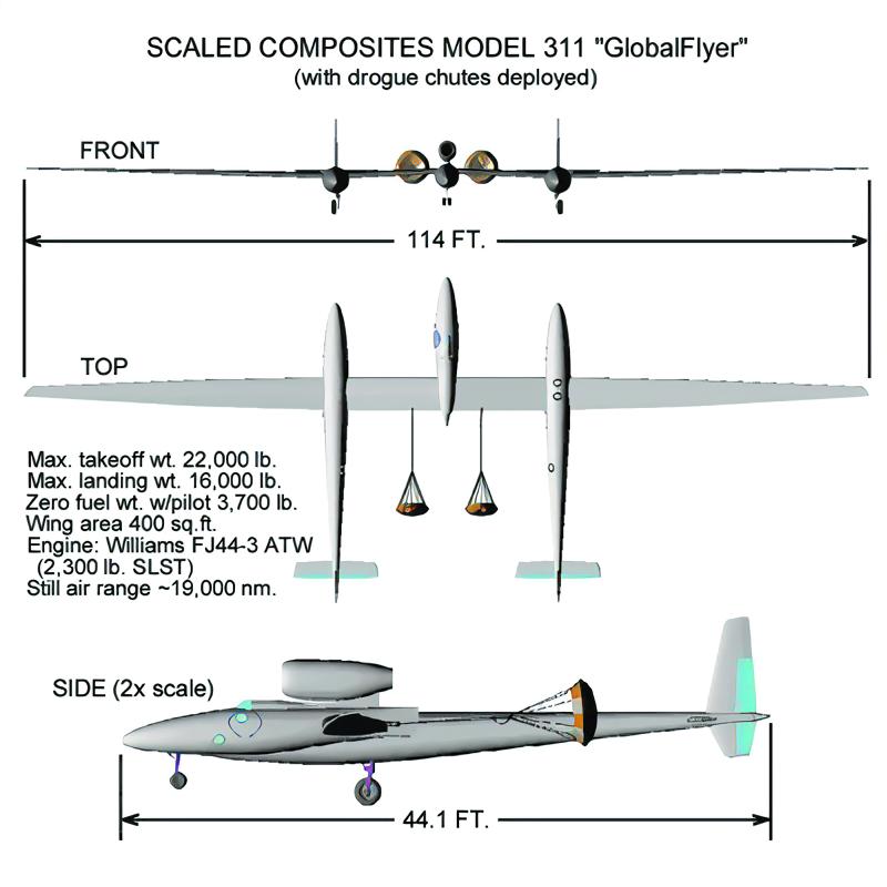 但看体格,这真不像一架航程超过4万公里的超远程飞机,维珍涂装是因为它是背后的金主。为了让飞机尽可能地飞得远,传奇飞机设计师鲁坦也是煞费苦心才打造出这一架“小身材,大能量”的超远程飞机。为了节油,飞机只装配一台小型涡扇发动机;