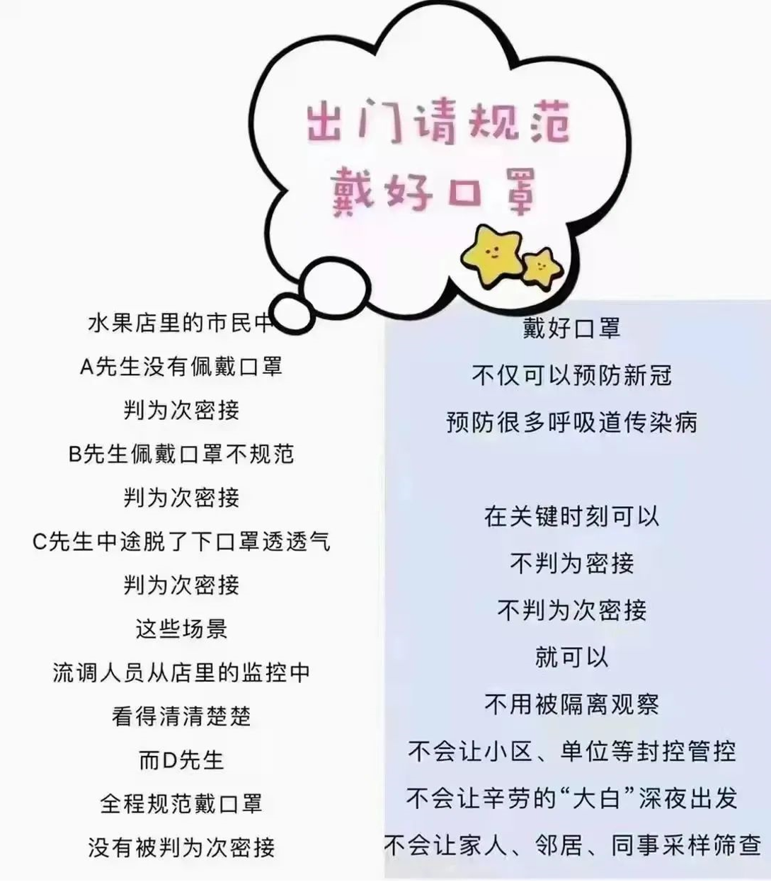 一张关于戴口罩的提示这两天在朋友圈传播开来,上海市健康促进中心对此表示,判定密接、次密接有严格的规定,不仅仅看是否戴口罩,但是,“规范戴口罩”仍然是很重要的一点,也是每个人日常可以做到的。