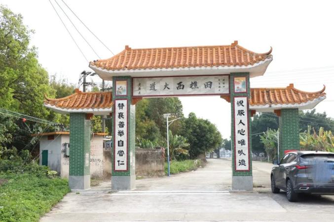 △田樵村西边大道牌坊“赞襄善举自当仁,悦服人心为咏德”。田樵村西边大道牌坊上所镌刻的这幅对联便是对胡耀坤不遗余力建设家乡美德的赞扬。