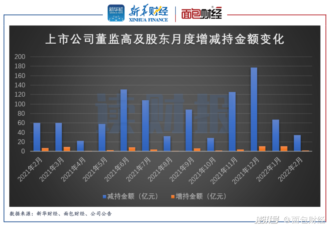 2022年2月,沪深两市上市公司董监高及其关联人减持金额合计约34.13亿元,涉及128家公司。