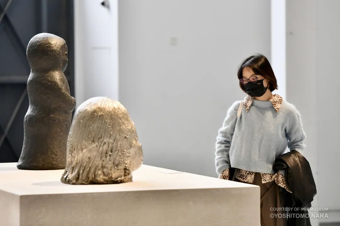 “奈良美智”,余德耀美术馆展览现场,2022年,摄影:JJYPHOTO此次展览将在美术馆⾼挑的主展厅中搭建⼀座特别的“奈良美智雕塑公园”,由阿德⾥ 安·卡迪⼯作室设计的特制展台上将展出这⼀组青铜雕塑和玻璃钢雕塑原始模型,反映艺术家极具共情之眼的创作。透过奈良美智安静、沉思的作品,本次展览也旨在重置某些主流看法,将焦点转向艺术家近⼗年创作中更为普遍的⾃我内省和个性。