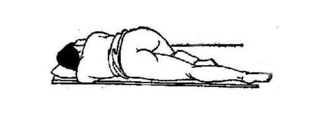 胸膝位,图片来源:《物理诊断学》对于年老体弱的人,或者因为某些原因无法做到胸膝俯卧位时,也可以采用侧卧位,比如左侧卧位(也叫 Sim’s 体位)。左腿伸直,右腿膝关节屈曲并尽量抬高靠近胸部,臀部向后拱出,尽可能暴露出肛门区域。