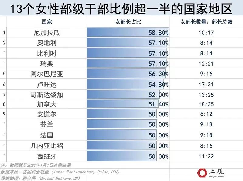 原标题:《全球四分之一的议会成员是女性,为何北欧女性部级领导数量最多》