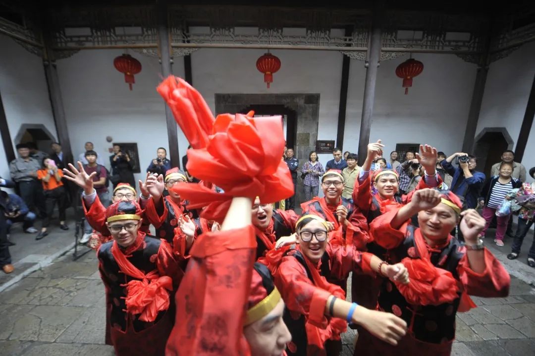既然是中式婚礼,尴尬的一天,通常从接亲就开始了。传统的接亲仪式就像大型耍猴现场,新郎要过五关斩六将才能结束这一让人社死的环节。