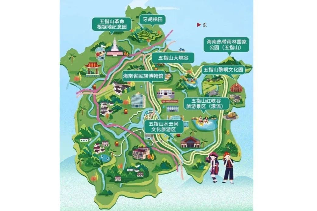海南岛公路交通路线示意图查看地图时,瞥到 “五指山” 三字,似曾相识。正暗自琢磨,家人一语道破:“这是不是《西游记》里,压着孙悟空的那个五指山?”。