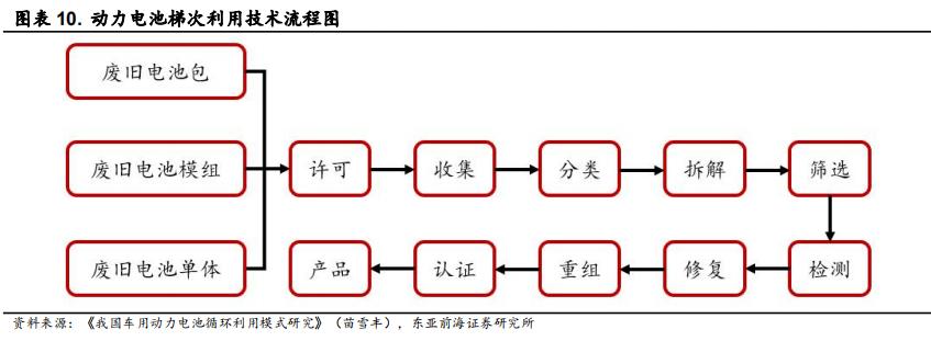 来源:东亚前海证券由此形成的动力电池回收的主流商业模式即,由电池厂、车厂将废电池及电池废料交付给第三方动力电池回收机构,后者对回收物进行绿色处理,将镍、钴、锰等金属进行绿色提取,并生产出电池级镍、钴、锰硫酸盐、三元前驱体或正极材料,作为动力电池生产的原料供给第二、三、四类企业。