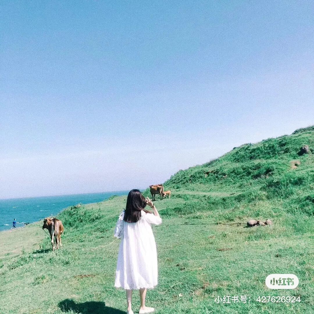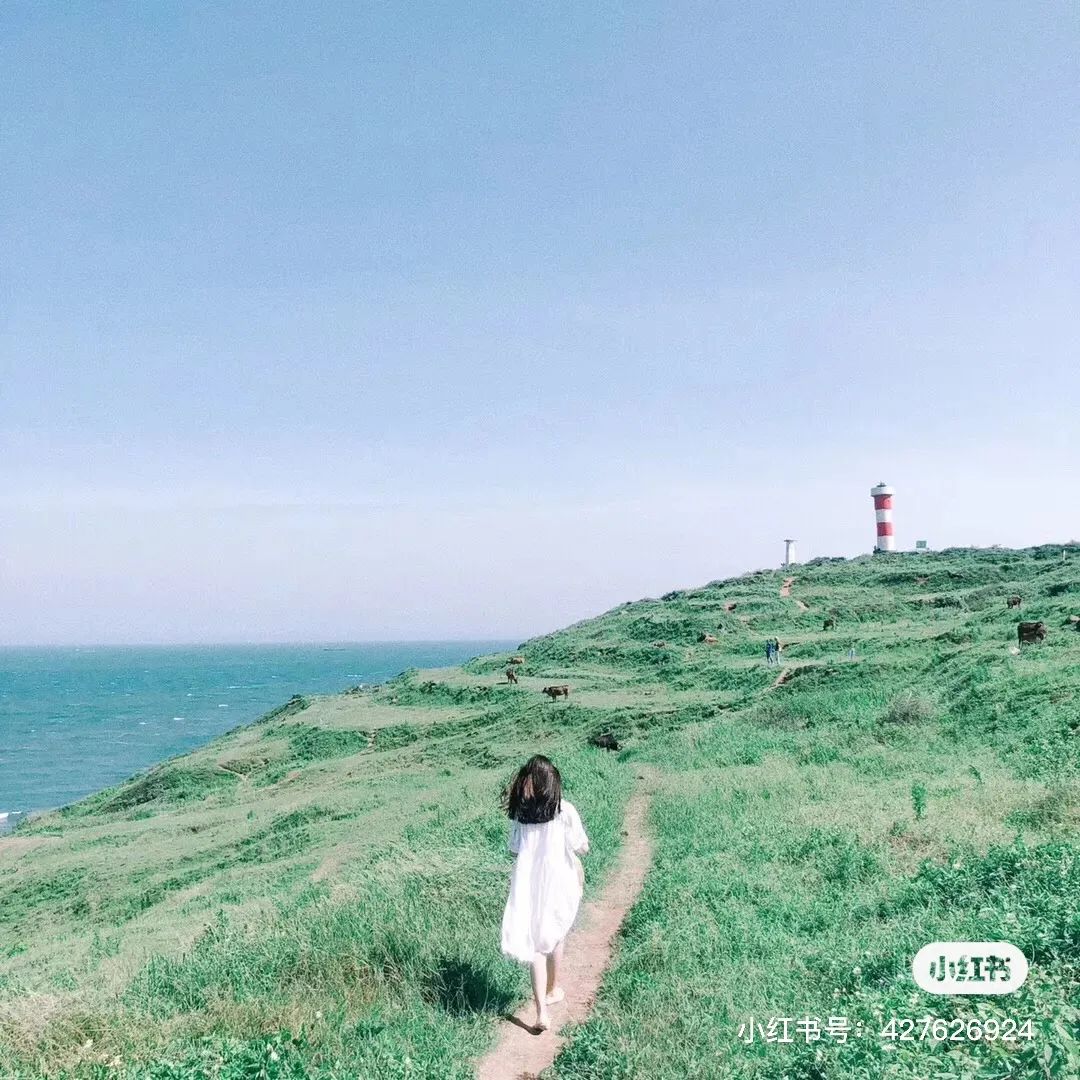 大片的海草,尽头的两座红白相间的灯塔,还有安然出没的几只牛,都像是来到了韩国济州岛一样。随手就能拍出文艺胶片感的照片!