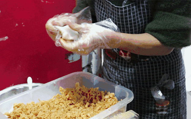 随后会蘸上花生粉,这样花生香味配合软糯的皮和香脆的馅,咬下一口就能感受浓浓的漳州风味,这样的味道你还不爱嘛?