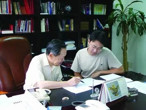 杨振宁和读博士时的翟荟(右)讨论问题古香古色的科学馆