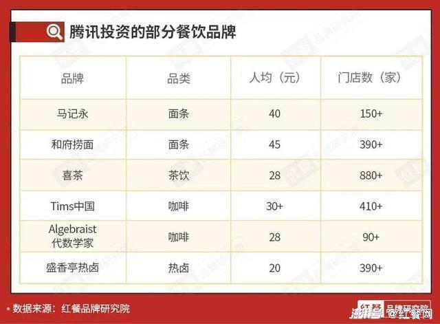 当然有些品牌可能这些因素兼备,就像腾讯、美团等互联网巨头们,他们跨界餐饮既为触达获得年轻用户,同时也为赚钱,投资的餐饮项目都是能规模化复制的,自然也是为了收益能最大化。